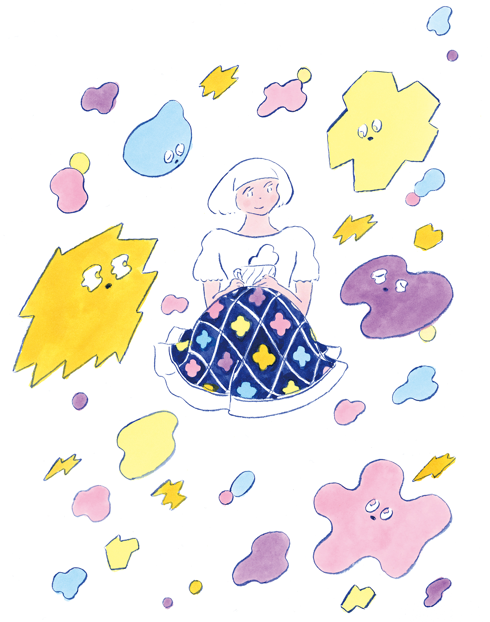 デザインは、坂川朱音さん。「不機嫌な気持ち」のみんなとうまく付き合おうとしている女の子を描きました。